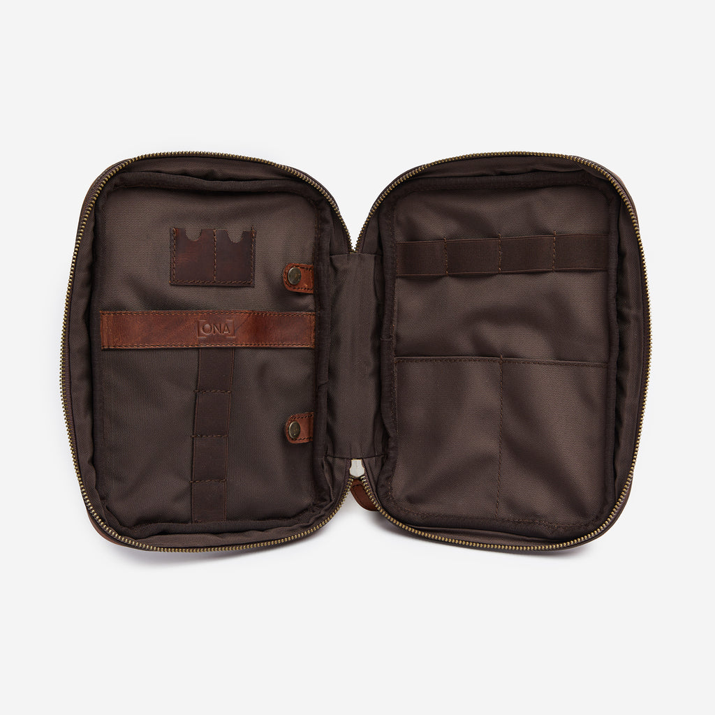 - Leather zipper pull offer easy access to an endless combination of organization options inside.
